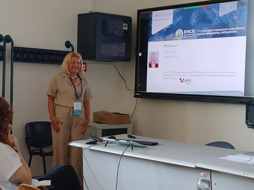 Rezultate dosadašnjih istraživanja u sklopu projekta, predstavila je prof.dr.sc. Vesna Rastija, u vidu prezentacije pod naslovom “Prediction of ecotoxicity for new imidazoles as potential plant protection agents”.